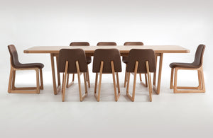 Made in select American Oak these stunning tables and benches are sturdy and functional work partners where the crafted engineering allows for flat pack in transport and ease of onsite assembly with a simple hand tool. Terra Firma pieces are polished to display the grand, individual character of each piece in natural clear oak, stained dark walnut or colour matched by request.