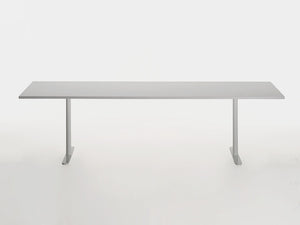 Twin column table system fabricated in steel tube and solid plate steel. Wide selection of powder coat colours and tops.