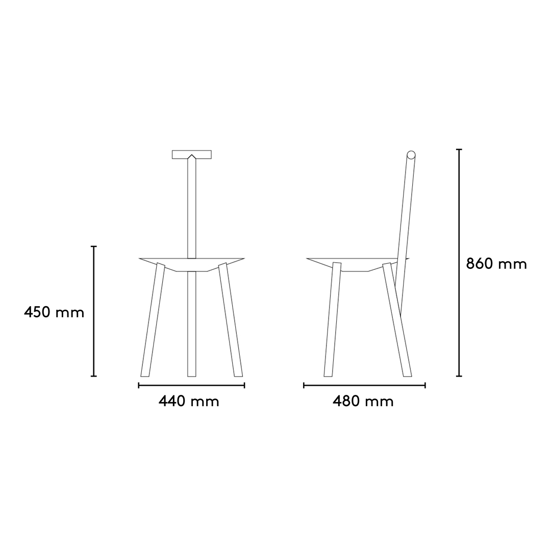 This chair is a mix between the classic milking stool and the handle of a spade. Pile your towels on it in the bathroom, use it to unlace your muddy boots in the hallway or exhibit it as a minimalistic artwork in the living room… You could also use it as a chair in your dining room.