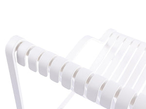 Entirely made of aluminum, a sustainable and durable material suitable for an outdoor use, the Vendicari Lido armchair is perfect for furnishing any kind of environment with its bold, elegant and modern design. The available colors give these products an ever-changing image: the pure white conveys a sensation of absolute lightness, the violet blue is a clear reference to marine landscape, while the oxide red establishes a direct connection with natural elements.