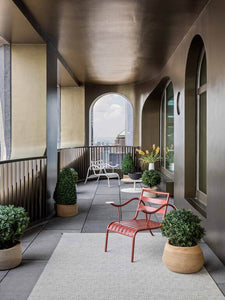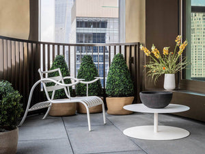 Designed from the very beginning for both an indoor and outdoor use, this armchair is now improved in the Lido version, for a perfect resistance to atmospheric agents. Available in the new pure white, violet blue and oxide red colours, Thinking Man’s Chair Lido is a comfortable seat, perfect for prolonged periods of relaxation and pondering.