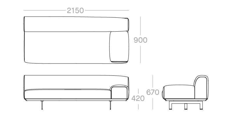 2150W x 950D x 700H mm