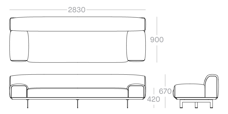 2830W x 950D x 700H mm