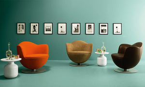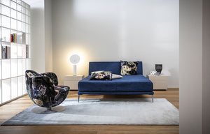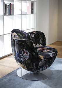 Charming at first glance: the Dalia armchair by Marcel Wanders is a floral embrace whose sensual curves capture the soul in poetic suspense. An iconic element of design, with a contemporary appeal and moderate dimensions, this armchair offers optimal comfort, with padding placed above a swivelling base (also available with a return mechanism).