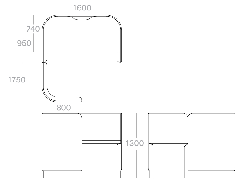 Individual Booth Dimensions: 1600W x 1750D x 1300H mm (720mm desk height)