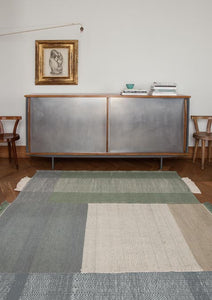 Tres is a traditional Indian flat-weave Dhurrie rug. Its unique quality lies in the production of three independent parts in which different fibres predominate. The proportion and combination of wool, felt, and cotton generate changes in tone and irregularities in the weave, bringing the pattern to life.