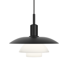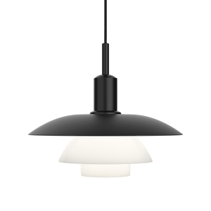 The fixture is available with white opal glass or soft touch black painted metal with a white inner side. Where the metal shades with the white painted inner sides reflect a fine and primarily downward directed light, the metal top shade combined with translucent opal glass middle and lower shades in three-layered mouth blow opal glass create a warm glow around the pendant too. The included diffuser in frosted glass is easy to insert for an even softer light distribution.