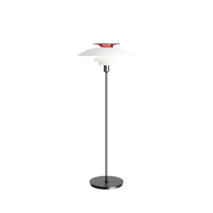 The PH 80 emits diffuse and symmetrical light. The majority of the light is directed downwards, and the opal acrylic shades provide comfortable room lighting. The red hue of the top reflector helps giving the light a warmer glow.