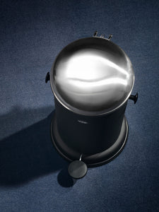 Holger Nielsen’s original pedal bin was not designed in the strict traditional sense but got its visual expression in response to a series of functional criteria: A large foot for stability, a domed steel lid on top which is easy to clean, ears on the side of the body so it is easy to move around and a rubber ring at the base for protection the floor. These functional dogmas remain the starting point for all Vipp products.