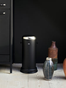The Vipp16 pedal bin is a large trash can for kitchen, office or bathroom. This pedal bin is equipped with a removable inner bin, a lid that ensures air-tight closure, and a damper mechanism that provides smooth closing of the lid. A rubber ring at the base protects floors. For an overview of all available sizes of Vipp bins, click the link below.