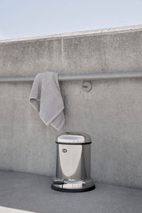 The Vipp 14 pedal bin is an 8-litre waste bin. It is equipped with a damper mechanism for smooth closing of the lid, along with a rubber ring that ensures an airtight closure. The body is manufactured from either powder-coated steel or stainless steel, concealing a removable inner bin made of galvanised steel. Additionally, a rubber ring at the base ensures that sensitive surfaces are safeguarded.