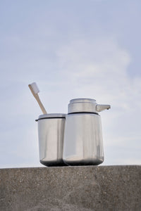The Vipp dispenser is a functional product for the bathroom or kitchen and is characterised by the same design language and choice of materials as the Vipp pedal bin. The dispenser has a solid body and a custom-designed pump that ensures a proper amount of hand soap, sanitiser gel, or dishwashing liquid. A sturdy body with a solid base gives the Vipp dispenser stability for one-hand operation.