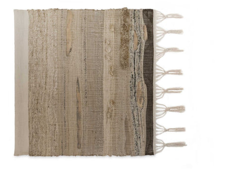 The Wellbeing collection uses hand spun Afghan wool, nettle, jute, linen, Tussar silk as well as cork, wood, raw wool, and raw cotton carefully sourced by nanimarquina’s team, as close as possible to where the pieces from the collection are produced, using traditional craft techniques and local artisans with whom nanimarquina has worked with for a long time.