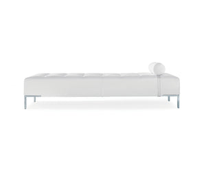 Armchair, monobloc, modular sofas, poufs. Steel feet, chromium-plated or varnished graphite, or with natural or black nickel-satin finish. Steel frame. Elastic strips suspension. Upholstery in polyurethane/heat-bound polyester fibre. Fabric or leather removable cover with quilted seat cushion. Small cushions in Dacron Du Pont or in goose down.