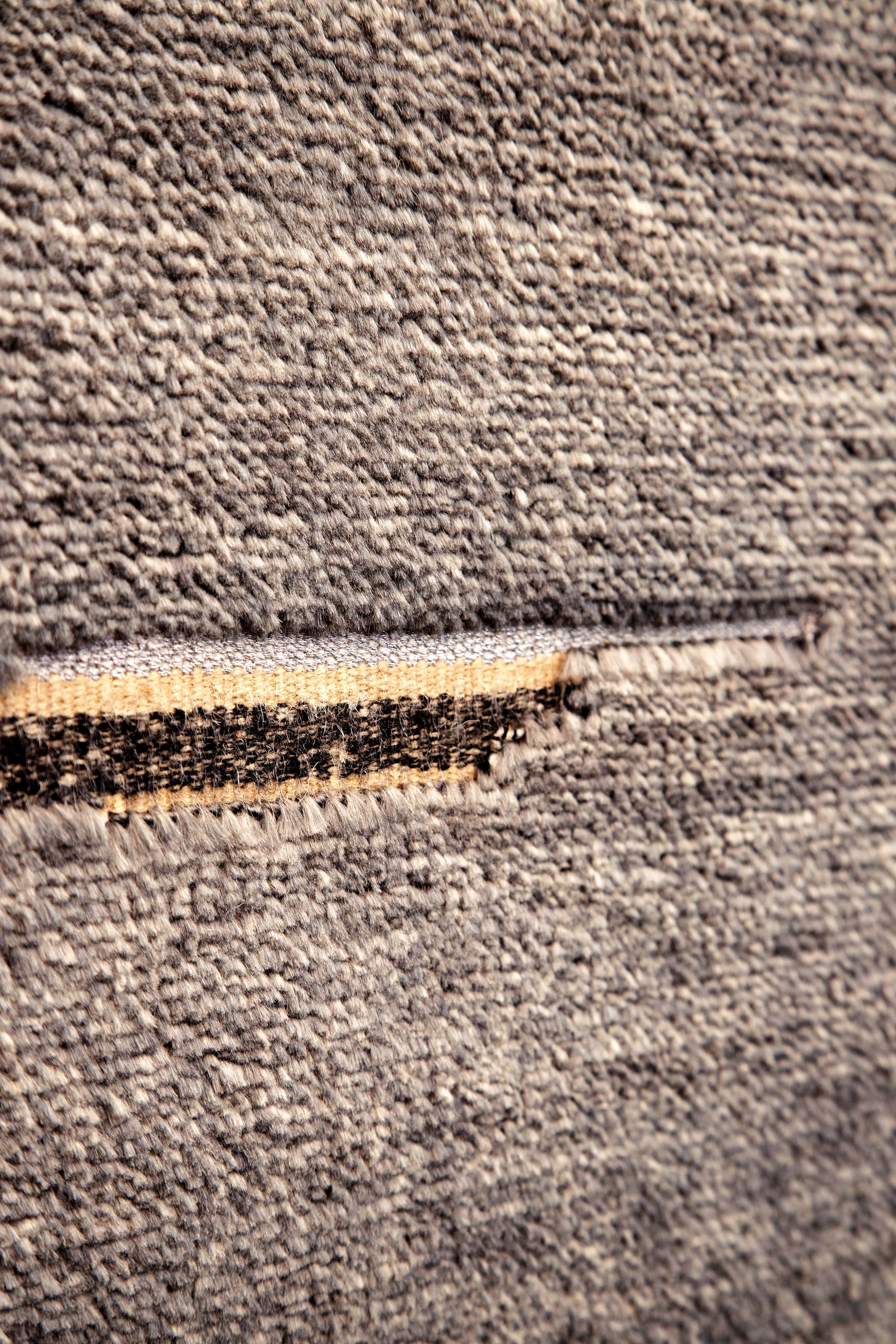 The use of chobi gives these rugs a unique visual richness, which is revealed by changes in light and movement. This inherent characteristic of the hand-spun wool together with the chobi technique lies in the way it is woven: the orientation of the fiber when the knot is closed, its length, and the density of knots.
