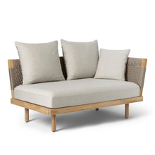 Echoing the clean lines and contemporary casualness of its indoor counterpart, the EOOS Embrace Outdoor Lounge Sofa brings the freedom of customisable comfort to outdoor spaces. A sturdy hand-woven flat rope back and armrests give the sofa elegant, structural detail, supporting cushions in soft, earthy colours inspired by the Scandinavian landscape. A considered balance of relaxed upholstery with a durable untreated FSC-certified teak frame, this modular sofa design is adaptable for residential and public environments.