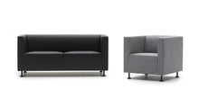 The Gambetta collection is characterized by a subtly rounded backrest atop angular forms. The structure is made of poplar plywood and solid fir wood, with polyurethane foam padding. The die-cast aluminium legs ensure ideal stability and are finished with anthracite matte-finish varnish. The upholstery on the Gambetta sofa and coordinating seats is fixed, and available in the fabrics and leathers from the collection.
