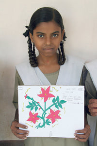 The collection depicts original drawings from students at Care & Fair schools in India. This is the tangible fusion of two worlds through the eyes of children, a fusion that arises when beauty changes the world. Proceeds from the sales of this rug are donated to the organisation to finance the Amita School in Bhadohi (India).