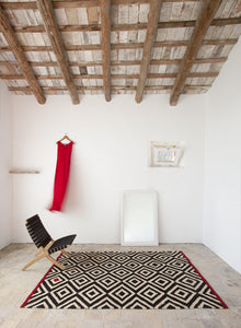 Thanks to the simplification of classic motifs such as geometric patterns and a pared colour palette, the Mélange is a contemporary version of the Kilim. An exercise in aesthetic rationalization that upholds the ancestral handcrafted techniques of Pakistan.