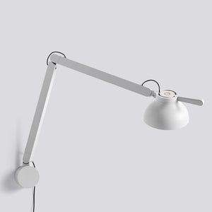 Pierre Charpin’s PC lamp series is a family of refined and precisely engineered multifunctional task lamps that can be used in a number of ways – free standing, desk, clamp and wall mounted. The lamp has a highly functional design featuring a polycarbonate head, aluminium arms and ABS base, with concealed gas springs that enable the arms and head to hold their position wherever they are moved. It also features an integrated touch dimmer switch that provides control over the level of brightness. The PC double arm lamp features double swing arms and is available in clamp, wall bracket, table base and table insert variants. It is suitable for both private and office environments and qualified for contract use as a task light.