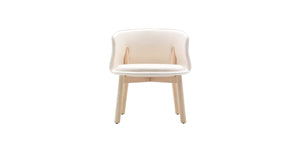 Peg Armchairs are equipped with fixed upholstery in the fabrics and leathers of the collection.