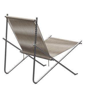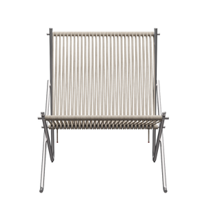 Seven tubular steel pieces are welded into a single frame, the back and seat are of a single length of halyard—the result is a light and sculptural expression that is both ingenious and elegant. The design perfectly captures Kjærholm’s unique ability to distill technically complex ideas into visually arresting, functional objects that are as much standalone works of architecture as they are furnishings that stand at the intersection of art and design.
