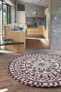 The pattern is normally composed of flower petals, leaves, coloured powders, rice flour, and other elements that act as a vehicle for decoration. Inspired by the essence of the Rangoli, the rug is a tribute to the original essence, acting as a beacon of wellbeing and welcome.