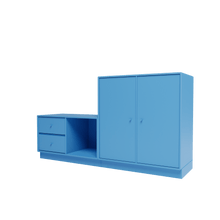 REST III is a multifunctional storage bench with four open compartments and two drawers that offer flexible storage options to refine your space.