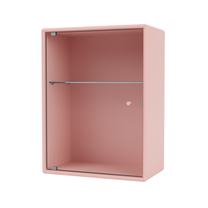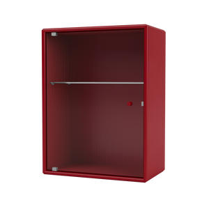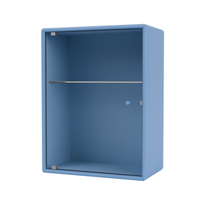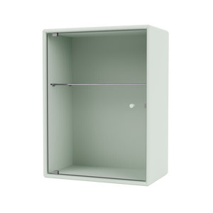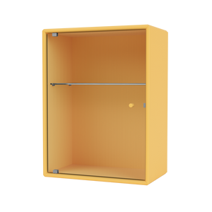 RIPPLE is a small cabinet for the bathroom – perfect for storing wellness and beauty items. The cabinet has a door in rippled glass with a lacquered handle. Inside is a glass shelf, placed 18.3 cm from the top. The RIPPLE cabinet is only available with suspension rails.