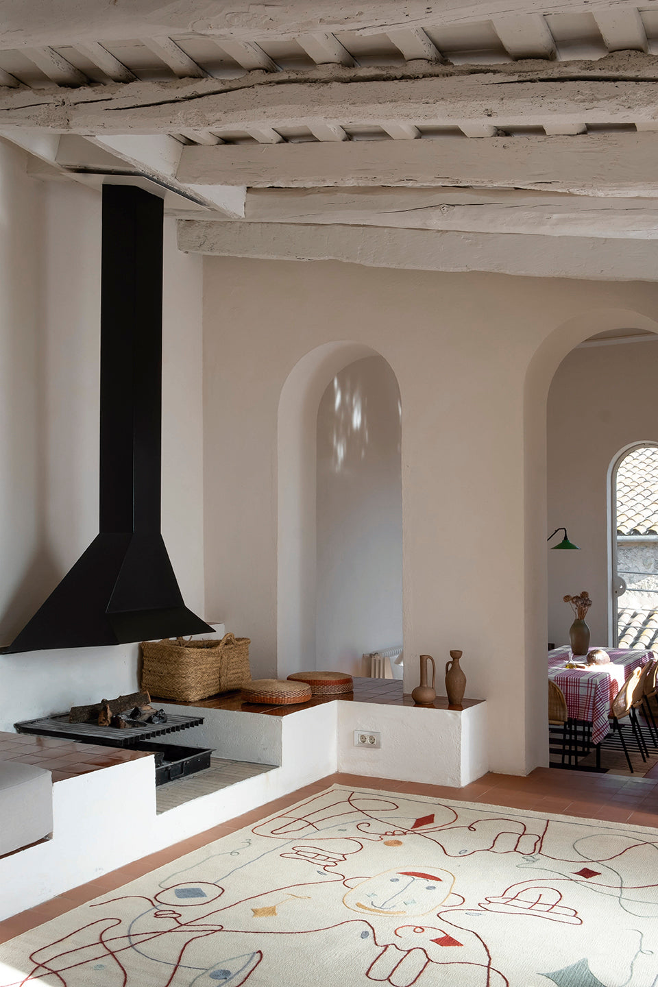 Depicted with a delicate stroke, the illustration defines the silhouettes of several imaginary characters that intertwine and coexist in a beautiful composition. Hayon subtly introduces color through small elements brimming with personality that help to interpret each of the images. Nine faces are distributed at different angles so that the rug can be viewed from any perspective, fitting perfectly in any space.