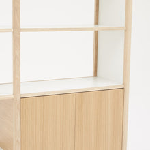 The Summit is a clean, simple and highly functional shelving and storage solution, suited to both home and office. The solid oak timber edging and legs bring warmth to the strong aluminum shelving and also add detail through the timber junctions.