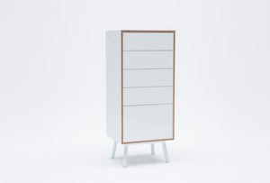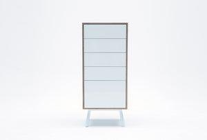 The Tallboy is a sophisticated yet playful object which is not only a very functional piece of furniture for the bedroom, but also has the ability to transform and lighten a space with its clean faces and minimal form. The subtle form and clean lines mean the Tallboy doesn’t overpower a room with its presence, however it easily creates a striking feature for any interior.