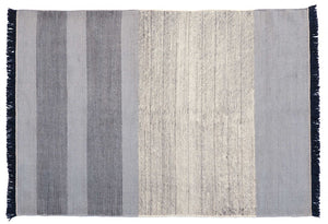 Tres is a traditional Indian flat-weave Dhurrie rug. Its unique quality lies in the production of three independent parts in which different fibres predominate. The proportion and combination of wool, felt, and cotton generate changes in tone and irregularities in the weave, bringing the pattern to life.
