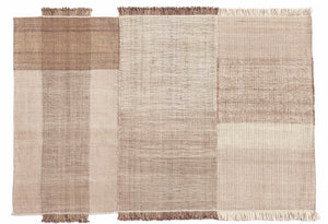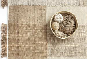 The beauty of this collection, a flat weave created in India, lies in the irregularities generated by the crossing of the fibres and their different thicknesses, but also in the shades of beige, ivory or off-white fibres.