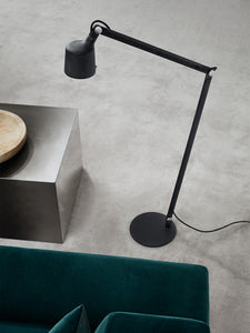 The Vipp floor reading lamp is a reading light for the living room. Equipped with details such as an adjustable arm for focused lighting, the floor reading lamp also features a perforated shade and matte glass for a pleasant diffusion of light.