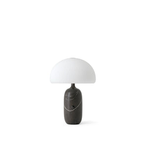 The Vipp Sculpture table lamp is ideal as decorative lighting, suitable for the living room or bedroom. A durable LED unit is hidden under a three-layer opal glass shade, offering a cosy illumination. The round cylinder base of either greyor white marble features a dimmer switch and a fabric covered cord.