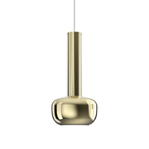 The pendant emits downward directed glare-free light. The radial perforation pattern around the opening creates a softer transition between light and darkness. The perforations create a soft beautiful pattern of light both on the shade and on the surrounding surfaces.